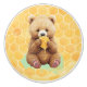 Cute knob for a baby's nursery or child's room done in a woodland creatures theme with forest animals featuring a little baby bear cub eating honey and a honeycomb background.