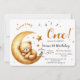 Cute Baby Bear Sleeping On The Moon 1st Birthday Invitation