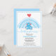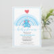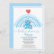 the front design shows a baby shower invitation in sky blue and black calligraphy and typography with a baby blue elephant at the top with red heart. this design is cute and unique and will be an ideal item for your baby shower.
