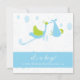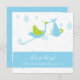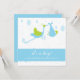 Cute Teal Blue baby shower invitations. Featuring a stork carrying a boy. Enter your own greetings.