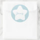 A customisable round sticker with cute, white stars on baby blue pastel background. The stickers are customisable so that you can edit them with your own name. The background colour is also customisable and can be changed to your liking.