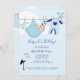Whimsical blue baby boy bundle with Stork, boy baby shower invitation. Customize with your event information and location. Trendy cute typography in blue. Baby bundle on the reverse side of the invite!