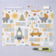 Cute Baby Boy Car and Toy Pattern with Name Tissue Paper