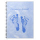 A cute pregnancy journal notebook with baby boy footprints against a pastel blue background. Personalise by adding your name or your baby's to the front.