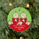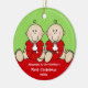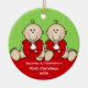 Our First Christmas Ornament features an adorable pair of baby boy twins set on a red & green polka dotted background! Personalise with your baby information and date and you're all set to go! Wonderful dated keepsake gift for your baby's 1st christmas.