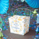 Cute boy baby shower favor box with baby clothes and toys theme. Perfect for baby shower party favors and guest treats.