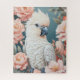 Cute Baby Cockatoo Parrot Soft Pink Flowers Jigsaw Puzzle