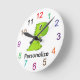 I bought the clock as a 'first time' grandmother. When I opened the package, I cried. the workmanship, material, color and the opportunity to personalize it was just perfect. I know that my grandson will be able to quickly learn to identify numbers, count and tell time! What a keepsake! I was totally happy with the printing, color choice and overall presentation of the clock!