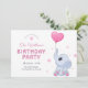 Cute baby elephant and balloon birthday invitation