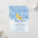 Cute elephant baby shower invitations with an adorable baby elephant on the banana moon and blue stars. These elephant baby shower invitations are easily customised for your event by simply adding your event details.
