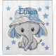 Adorable baby elephant sitting happy, with his little hat and stars.