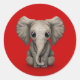 Cute Baby Elephant Calf Sitting Down, Red Classic Round Sticker