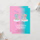 Lovely gender reveal baby shower invitation card featuring a cute baby boy elephant and a cute baby girl elephant with a soft blue, Blush pink pastel colours as background. This invitation can be fully personalised with your text and photo.