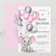 Cute Baby Elephant with Balloons Girl Baby Shower Invitation