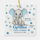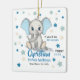 Cute Baby Elephant with Blue Ears Boy Birth Stats Ceramic Ornament