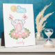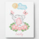 Cute watercolour baby elephant with pink butterflies and pink flowers.