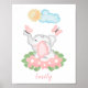 Cute Baby Elephant with pink flowers poster