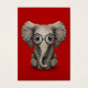 This cute design features a small baby elephant with large ears and deep black eyes. The calf is sitting with its front legs beside each other and is looking forward with its trunk hanging down. The over sized head and small body along with the details in the skin create a beautiful combination of a cartoon and realistic look. Reading glasses sit on the elephants nose which gives the pattern a playful look and intelligent feel. This unique design is an adorable example of this wonderful and majestic creature.