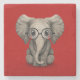 Cute Baby Elephant with Reading Glasses Red Stone Coaster
