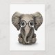 This cute design features a small baby elephant with large ears and deep black eyes. The calf is sitting with its front legs beside each other and is looking forward with its trunk hanging down. The over sized head and small body along with the details in the skin create a beautiful combination of a cartoon and realistic look. Reading glasses sit on the elephants nose which gives the pattern a playful look and intelligent feel. This unique design is an adorable example of this wonderful and majestic creature.