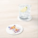 A very cute round paper coaster with an illustration of a smiling baby fox.