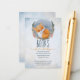 A little one is coming this winter. Cosy winter watercolor design featuring modern handwritten style script, orange cute sleeping baby fox on snowly background. The text can easily be personalised for a unique one of a kind design for your special day.