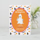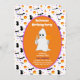 Modern cute baby ghost and pumpkin Halloween Birthday party invitation. Text is ready to be personalised.