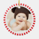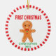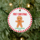 Adorable and cute babies first Christmas ornament to hang on your Christmas tree. Features a cute gingerbread boy, monogram name, year and your adorable babies photo on the back. Red and white candy cane border.