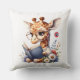 Cute Baby Giraffe Reading Book with Glasses Throw Cushion
