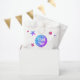 Complement your girl's first birthday favours with these cute birthday thank you favour bags. The purple and pink colours of the balloon and stars are fun and energetic. Personalise the text with your own. Illustrated and designed by Patricia Alvarez.