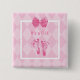 A cute 'It's a girl' birth announcement button with a girly pink argyle pattern background, embellished with sweet little baby footprints and a trendy pink ribbon tied into a bow. Perfect party favour for a little girl baby shower.