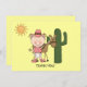 MATCHING INVITATION AND POSTAGE STAMP AVAILABLE. Western theme cartoon art. Fair-haired blonde girl. Colourful and cute! Customisable THANK YOU CARD for a baby shower, baptism party, or very young girl's birthday gift. Fun Western design features a baby cowgirl dressed in Western wear clothing: pink cowgirl boots, a pink vest, a pink sleeveless shirt, a diaper, and a pink cowgirl hat. She is standing with her favourite brown pony, a green Arizona saguaro (sahuaro) cactus, and a golden yellow sun. Pick your favourite background colour! IMAGE DESIGN NOTE: If changes made with the template image box(es) aren't what you had in mind . . . go to CUSTOMIZE IT! With a little help from my friends at www.scrappindoodles.com. From She Wolf Medicine.