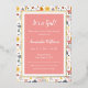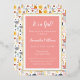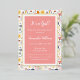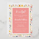 Add a cute custom touch to your baby shower with this adorable baby girl party invitation. Baby shower invite has a colourful pattern of a sun, moon, stars, baby carriage, toys, swan, whale, hearts, and more. Blocks spell out Baby Girl and there's a place to add your personalised party details like honoree, date, time, location, and RSVP information. This information is surrounded by beautiful gold foil.