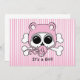 Cute baby girl skull and crossbones with pink hat and pacifier.