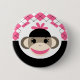 Cute Baby Girl Sock Monkey Pink Black Argyle 6 Cm Round Badge