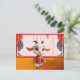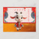 Cute baby Goat wearing Chinese cloths in cartoon style. Design on horizontal postcard with decorated Chinese pattern and texts to customize in back of the card. Matching greeting card. Perfect for a cute Chinese New Year of the Goat 2027 to kids.