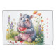Adorable watercolor illustration of a cute baby hippopotamus happily eating a juicy slice of watermelon while sitting in a field of colorful wildflowers. This charming and playful design is perfect for baby shower invitations, nursery decor, baby announcements, and sweet summer-themed celebrations. The soft watercolor style, bright flowers, and whimsical baby hippo create a joyful and heartwarming design that is perfect for welcoming a little one.