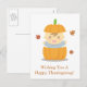 For families with baby boys who are celebrating their very first thanksgiving together, this adorable postcard will be great for sending your thanksgiving greetings to friends and family members. It has a cute baby boy waving happily within a pumpkin with autumn leaves falling around.