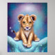 Cute Baby Lion Cub Snowy Background, this design features a Cute Baby Lion Cub Snowy Background.