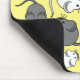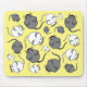 This very cute mouse pad has a bunch of grey and white baby mice against a yellow background.