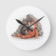 This adorable wall clock features a sweet baby monkey gently hugging his plush companion, inspired by a touching story of resilience and comfort.