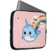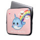 Cute baby narwhal with rainbow and clouds on pink laptop sleeve