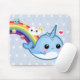Cute baby narwhal with rainbow, clouds and stars mouse mat