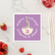It's party time! This adorable happy ostrich chick will add some fun to any party . Drawn in cute cartoon illustration style on a light purple and pink polka dot background.