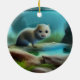 Cute baby otter in pond - personalizable ceramic tree decoration