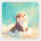 Cute Baby Otter Playing in Golden Sparkling Ocean Square Sticker