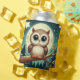 Cute baby owl at night with moon can cooler