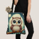 Cute baby owl at night with moon tote bag