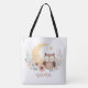 Cute baby owl with moon tote bag
