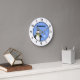 Cute baby penguin add name blue white kid's round clock